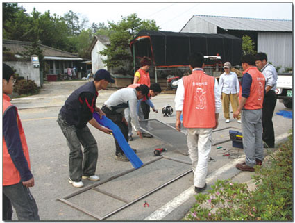 이날 돌쇠팀은 예초기와 비료 살포기 등을 수리해주는 한편 금속노조 전남서남지회 풍물패 ‘서남풍’이 참여한 가운데 주민들과 함께 사료공장 건립예정 부지까지 거리행진을 펼치기도 했다.