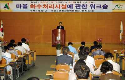 이와 때를 같이해 영암군은 지난 9월 마을 하수처리 시설에 관한 워크숍을 성공리에 개최했다. 9월 7일과 8일 영암종합사회복지관과 시공현장에서 공무원과 학계 그리고 업체 담당자 130여명이 참석한 가운데 열린 워크숍에서 영암군 수도사업소의 하수처리 특허공법의 우수성을 인정받았다.
