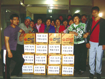 도포면 남녀의용소방대 대원 20명은 가정의 달을 맞아 지난 17일 독거 노인 가정 15세대를 가가호호 방문해 봉사활동을 벌였다. 이번 봉사활동을 통해 대원들은 식료품 및 라면 등 위문품을 전달하고, 부엌 청소 등 집안을 정리정돈하는 등 보람있는 시간을 보냈다.
