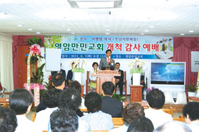 영암 만민교회 박영육 담임목사는 “그동안 강진 완도 해남 등 전남 서남부지역에는 만민교회가 없었지만 이번 영암 만민교회 탄생을 계기로 영암지역을 전국적으로 널리 홍보하고 주민들의 삶의 질 향상과 문화가치를 높일 수 있도록 적극 노력하겠다”고 밝혔다.