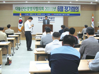 대불국가산단 경영자협의회(회장 고창회, 대아산업(주) 대표) 6월 정기회의가 회원 50여명과 현종상 영암군 지역경제과장, 김귀연 영암경찰서 수사과장, 이승준 영암소방서 방호구조과장, 박종문 F1조직위원회 사무총장 등이 참석한 가운데 지난 22일 한국산업단지공단 대불지사 포럼룸에서 열렸다.