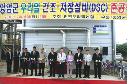 이날 김일태 군수를 비롯한 각급 기관사회단체장 및 주민 등 100여명이 참석한 가운데 신북면 이천리에 준공된 우리밀건조저장시설(DSC)은 싸이로 2기 1,000톤 보관능력을 갖춘 최첨단시설로 총 공사비는 9억원이 투입됐다.