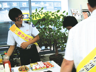 영암우체국은 이날 11번째 방문하는 고객에게 Happy 사은품을 전달하며 감사의 마음을 전달했다. 또 떡과 음료 등 다과를 준비해 정겨움을 제공했으며 보기만 해도 재미와 즐거움을 보여주는 직원의 코믹안경 착용으로 시원한 웃음을 선사하기도 했다.