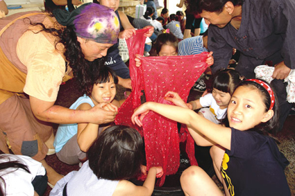 학생들은 염색체험에 앞서 김경희 환희지천연염색공방 대표의 치자, 소목 등의 염색재료와 염색 방법 등 친절한 설명을 들으며 고개를 끄덕이는 표정들이 사뭇 진지하기 까지 했다.