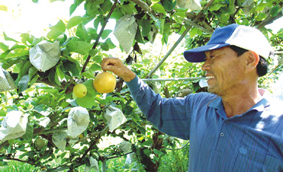 이씨가 봉지를 벗겨내고 하우스배와 노지배 크기를 비교해 보이자 확연히 크기가 다르다. 이이씨네 광산농원에서 출하하는 배는 한국유기농협회 내 유통회사를 통해 전량 백화점에 납품하고 있다.