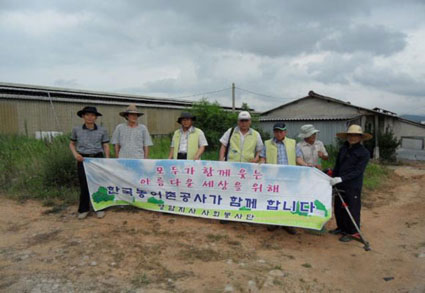 한국농어촌공사 영암지사(지사장 하상수)는 지난 6월말부터 7월초 장마철 집중호우로 인해 피해를 입은 도포면 영호리 김성재(74)씨 농장을 방문해 우사 주변 정리와 농장 주변의 나무고정 및 풀베기 작업 등을 실시하는 등 대민지원활동을 벌였다.