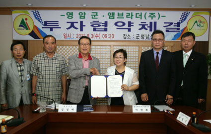 앰브라더(주)는 현재 수요가 급증하고 있는 휀스, 데크, 벤치 등 합성목재를 생산·판매하기 위한 공장을 증설 하기 위해 원재료 수급과 생산제품 판매 등이 용이한 지역을 적극 검토한 결과 영암에 최종 투자하기로 결정했다. 공장설립 때에는 친환경 에너지 설비를 적극 도입하기로 했다.