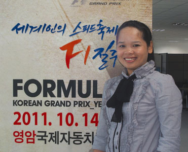 마리벨압신씨는 “집안 살림과 함께 하는 일이라 힘들겠지만 F1대회 성공을 위한 역할을 할 수 있게 돼 큰 영광으로 최선을 다해 외국인에게 콜센터 안내 서비스를 제공하겠다”고 밝혔다.