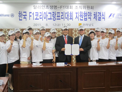 협약식에서 박준영 F1조직위원장(전남도지사)은 “협약을 계기로 F1대회 국제적 후원사인 알리안츠생명이 한국 F1대회에 지속적인 관심을 가져주길 요청하며 장기적인 파트너십 관계로 발전하길 희망한다”고 밝혔다.