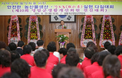 제10회 생활개선회원 전진대회가 지난 23일 영암군민회관에서 생활개선영암군연합회(회장 최영심) 회원과 김일태 군수, 기관사회단체장 등 600여명이 참석한 가운데 열렸다. 이번 대회는 지역사회의 리더로 활동하고 있는 생활개선회원들의 단합과 결속을 다질 뿐 아니라 친환경농업의 선도적 실천, 꿈이 있는 농업, 살맛나는 농촌, 작지만 강한 농업 실현을 결의하는 뜻 깊은 자리가 됐다.