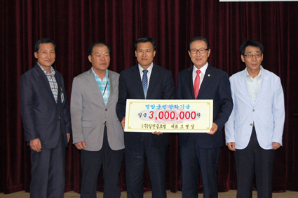 영암군의 인재육성을 위한 장학기금 기탁행렬이 끊이지 않고 있다. 군은 지난 1일 군청 왕인실에서 개최된 정례조회시간을 통해 광민토건(주) 류재선 대표와 일진글로벌 조병상 대표가 각각 300만원을 기탁한데 이어, 신북 출신 공직자모임(회장 신영철) 200만원, 수도사업소 박봉철 직원이 200만원 등 모두 1천만원의 장학금 기탁이 이뤄졌다고 밝혔다.