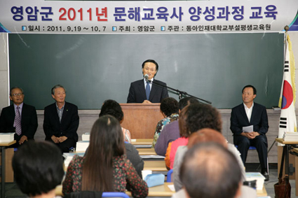 정광덕 부군수는 이날 개강식 인사말에서 “문해교육을 받으실 분들은 일제 강점기와 격동의 전란, 보릿고개를 넘어 오직 가족과 나라발전을 위해 힘쓰신 분들”이라며 “여러분들이 오늘 그 분들에게 새로운 세상을 열어주시기 위해 이렇게 문해교육사 교육을 받은 것 자체가 대단히 존경스러운 일이다”며 감사의 말을 전했다.