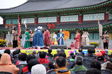 개막 첫날인 29일부터 매주 토요일과 일요일 오후 3시 공연하게 되는 왕인박사 인물재현 프로그램은 동아인재대학 산학협력단이 주관하는 왕인박사의 업적을 기리는 행사다.