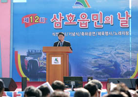 삼호읍 농어촌복합체육센터와 인조잔디축구장 등에서 김일태 군수를 비롯한 기관사회단체장과 읍민, 출향 향우 등 2천여명이 참여한 가운데 열린 제12회 삼호읍민의 날 행사는 식전행사로 경품추첨과 해군 제3함대 군악대의 공연, 낭주예술단의 살풀이 공연이 이어지면서 축제분위기를 만들었다.