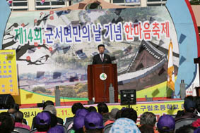 구림초교 운동장에서 열린 제14회 군서면민의 날 행사에는 김일태 군수를 비롯한 기관사회단체장과 향우, 면민 등 1천여명이 참여했다.