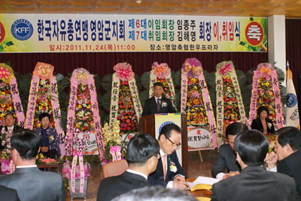 김일태 군수와 박영배 군의회 의장, 전갑석 농협중앙회영암군지부장을 비롯한 각급 기관사회단체장과 회원 등 200여명이 참석한 가운데 열린 이날 이·취임식에서는 제6대 임종주 지회장이 이임했으며, 제7대 김해영 지회장이 새로 취임했다.
