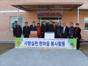 범죄예방위 영암지구협의회(회장 김두호)는 지난 5일 ‘사랑실천 한마음 봉사활동’에 나서 서호면 소재 ‘사랑의 집’(원장 정성일 목사)을 찾아 세탁기 1대와 떡, 과일 등을 전달하고 요양중인 어르신들을 모시고 위원들이 직접 노래 한마당을 펼치며 즐거운 한 때를 보냈다.