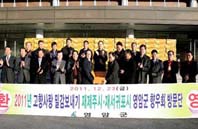 재제주·재서귀포시 영암군향우회(제주 김문옥 회장, 서귀포 김영중 회장)회원들은 구랍 23일 고향을 방문해 사랑의 밀감 300박스를 전달했다.
