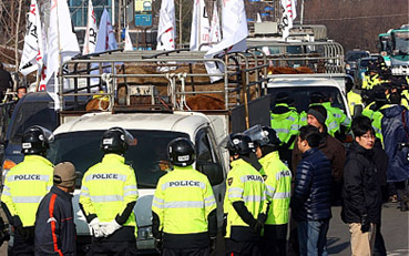 그러나 원천봉쇄 방침을 밝힌 경찰이 각 시군 나들목에서 한우를 싣고 상경 시위에 나선 축산농민들을 제지하자 집결지를 전남도청으로 변경하면서 도청 진입을 시도했으며, 삼호읍 백야리 도청 진입도로에서 상경을 만류하는 경찰과 대치했지만 큰 충돌은 없었다.