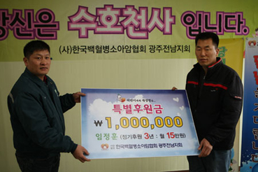 ▲김옥룡 10만원 ▲법무부범죄예방위원 영암지구협의회 20만원 ▲강동욱 전 영암군 산림과장 20만원 ▲신익현 영암읍 농덕리 이장 15만원 ▲삼성화재 김희남 소장 10만원 ▲남송 노인회 25만원 ▲남송마을주민 25만원 ▲재광금정면향우회 이원우 회장 50만원 ▲도포농협 이진용 조합장 외 임직원 100만원 ▲이한명 10만원