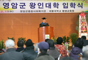 제8기 영암군 왕인대학 입학식이 지난 15일 군 종합사회복지관 대강당에서 김일태 군수를 비롯한 관내 기관단체장과 왕인대학생 등 150여명이 참석한 가운데 열렸다.