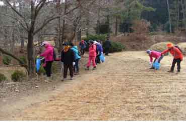 명예면장 일행은 영암氣체육공원에서 기찬랜드 구간과 기찬랜드에서 군서면 월암사에 이르는 기찬묏길을 직접 답사하며 쓰레기를 수거했다.