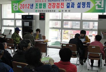 영암축협(조합장 서도일)은 4월3일 오후 본점 2층 회의실에서 축산업 종사해온 원로조합원 100여명에 대해 지난 3월12일부터 13일까지 실시한 건강검진결과에 대한 설명회를 가졌다.