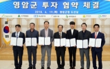 농업경제 진행우 객원기자513호2018. 04.20전남도와 영암군은 지난 4월 19일 군청 도선실에서 산업기계제조공장 등 5개 기업과 총 402억원을 투자해 180여명에게 새로운 일자리를 창출하는 투자협약을 체결했다.이날 협약식에는 심익섭 ㈜데콘 대표, 황상묵 (유)구림발효 대표, 김문수 에스엠기계 대표, 김동호 호원기계 대표, 정병득 새아침농산 대표, 이재영 전남도지사 권한대행, 전동평 군수, 박영배 의장, 우승희 전남도의원, 관계공무원 등 50여명이 참석했다.협약을 체결한 ㈜데콘은 경남 창원에서 공작기계와 자동차부품 등을 제조하는 ㈜동천의 신설법인이다. 대불국가산단 20만6...
