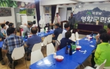 영암in 영암군민신문473호2017. 06.23매월 셋째 목요일 모임을 갖고 있는 재성남영암군향우회는 지난 6월 15일 향우회관에서 6월 월례회의를 가졌다.이날 월례회의에는 정두철 회장, 한윤남 직전회장, 박창순 고문, 박종원 수석부회장, 최대호, 최성주, 나봉선 부회장, 박순남 여성국장, 임안심 운영위원장, 이계종 화합위원장, 김인석 봉사위원장, 이동용 사무국장 등 회원 24명이 참석했다.특히 이번 모임에는 박정애, 최순자, 최영자씨 등 신입회원이 3명이 고향사람들을 보기 위해 사랑방을 찾았다. 이날 모임에서는 박종원(시종) 수석부회장의 유사로 준비한 음식을 먹으면서 친...