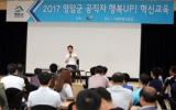 자치/행정 이승범 기자473호2017. 06.23군은 지난 6월 19일 서울시 일원에서 제1기 66명을 시작으로 전 공직자 대상 '2017 공직자 행복 업(up)! 혁신교육'에 나섰다.민선 6기 3주년을 맞아 공직자 역량강화를 위해 오는 9월15일까지 7기로 나눠 계속될 이번 공직자 혁신교육은 메이플레이스호텔 등 서울시 일원에서 달마지쌀 골드와 대봉감 말랭이 등 영암군 농·특산물 판촉활동과 문화관광홍보 등의 큰 주제 아래 다채로운 교육과 팀워크 향상 교육이 실시된다.특히 이번 교육은 공직자들의 실용적인 역량을 강화하기 위한 것으로 영암 인사이트 홍보, 가락몰 우수 농...