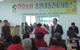 지역사회 영암군민신문274호2013. 04.19군은 한센 정착촌 주민과 재가 환자를 대상으로 지난 4월11일 이동진료사업을 실시했다.한센 이동진료는 군이 전문기관(한국한센복지협회)에 위탁 실시하는 사업으로, 한국한센복지협회 김종필 원장과 광주지부 의료진 등 전문가들이 함께 참여해 ▲대장암 등 6종 암에 대한 혈액검사, ▲통증치료기를 이용한 통증완화치료, ▲장애 예방을 위한 교정용 구두보급, ▲재활을 위한 보장구 제작 보급 등의 사업을 수행한다.이날 이동진료 현장을 방문한 김일태 군수는 한센정착촌의 애로사항을 경청하고 일일이 마을 주민들과 포옹하며 위로의 인사를 전했다. 한센병은...