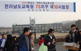 지역사회 이국희 기자252호2012. 11.092013학년도 대학수학능력시험이 11월8일 전국 85개 시험지구 1천191개 시험장에서 일제히 치러진 가운데 지난 2010년부터 고사장으로 지정된 영암고에서도 관내 학생 317명이 응시해 차분한 분위기 속에 시험을 마쳤다. 포근한 날씨 속에 진행된 이날 수능시험은 수험생들이 오전 8시10분까지 시험장에 입실해 1교시 언어영역(08:40∼10:00, 80분), 2교시 수리영역(10시30∼12시10분, 100분), 3교시 외국어영역(13시10∼14시20분, 70분), 4교시 탐구영역(14시50∼16시24분,...