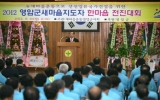 지역사회 영암군민신문245호2012. 09.14행복한 공동체 구심체 다짐 장학금 200만원도 전달‘2012 영암군 새마을지도자 한마음 전진대회’가 지난 9월10일 오전 영암군실내체육관에서 김일태 군수와 김연일 의장, 강우석·손태열 전남도의원 등 기관단체장과 회원, 주민 등 700여명이 참석한 가운데 열렸다.새마을운동 영암군지회(지회장 최인옥)가 주관하고 영암군이 후원한 이번 행사에서는 새마을 홍보 동영상 상영에 이어 회장단이 모금한 성금 200만원을 군민장학회 장학기금으로 김일태 군수에게 전달했다.이어진 전진대회에서는 지역 발전과 화합분위기 조...