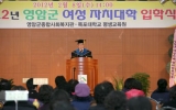 기획특집 편집국장 기자216호2012. 02.09영암군 여성자치대학 입학식이 지난 8일 군 종합사회복지관에서 여성자치대학 입학생 및 기관사회단체장 등 200여명이 참석한 가운데 개최됐다.2월부터 오는 12월까지(30주 60시간) 운영될 여성자치대학은 제6기 일반과정 60명, 제5기 심화과정 51명 등 111명의 교육생을 목포대 평생교육원에 위탁, 여성지도자로서의 소양과 자질향상에 초점을 맞춘 여성지도자 전문 프로그램을 과정별로 주1회 운영할 계획이다.