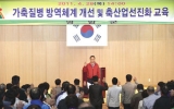 지역사회 영암군민신문179호2011. 04.29군은 지난 28일 농업기술센터 대강당에서 지역 축산농가 350여명을 대상으로 가축질병의 방역체계 개선과 축산업 선진화 방안에 대한 교육을 실시했다. 이날 교육에는 전남도청 동물방역담당인 권두석 사무관을 초청해 양축농가에 막대한 피해를 가져올 수 있는 구제역과 조류인플루엔자(AI)의 전파경로 및 재발방지를 위한 축산농가의 행동지침 등 농장 내 방역요령을 현장중심으로 진행했다. 김일태 군수는 인사말을 통해 “지난해 시작된 구제역과 AI는 양축농가들의 정신적인 피해는 물론 막대한 재산피해를 가져왔다”며 “...
