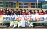 영암in 김명준 기자167호2011. 01.28영암군체육회(상임부회장 하덕성)와 영암달마지회 회원들은 영암에서 전지훈련 중인 전북 군장대학교 야구팀 훈련장을 찾아 떡국, 매력한우, 달마지쌀 등을 전달하고 선수들을 격려했다. 하덕성 상임부회장은 “10년만에 찾아온 혹한과 열악한 체육시설에도 불구하고 열심히 훈련에 임하고 있는 선수들에게 조금이나마 위안이 되었으면 하는 뜻에서 위문했다”며 “군장대학 선수들이 훌륭한 선수로 성장하기를 기대한다”고 말했다.