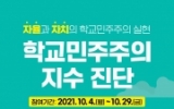 지역사회 영암군민신문679호2021. 10.08전남도교육청(교육감 장석웅)은 자율과 자치의 학교민주주의 실현을 위해 학교민주주의 지수를 진단한다. 진단은 10월 4일부터 29일까지 4주 간 도내 전체학교를 대상으로 이뤄지며, 학생·교직원·학부모가 PC나 모바일을 활용해 온라인 시스템에 접속해 설문에 참여하는 방식으로 진행된다. 전남도교육청은 지난 3월부터 TF를 구성해 학교민주주의 지수 문항을 수정 보완했으며, 7월에는 학교민주주의 지수 진단 온라인 시스템을 구축했다. 이어, 8월과 9월 교육지원청 담당 장학사와 함께 온라인 시스템 활용 방...