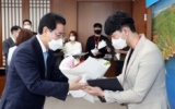 전남도정 영암군민신문677호2021. 09.17(재)전남인재평생교육진흥원은 코로나19로 취업이나 생활에 어려움을 겪는 지역 대학 졸업반 학생 중 일정 자격을 갖춘 학생 모두에게 '힘내라! 희망전남 장학금'을 지급키로 하고 9월 15일 증서 수여식을 열었다. 이날 전남도청에서 열린 수여식에는 전남인재평생교육진흥원 이사장인 김영록 전남도지사와 최일 동신대 총장, 장학금 수혜 대학생을 대표한 학생 6명 등이 참석했다. 장학금은 학생 1인당 60만원씩이며 총 지급 규모는 34억원으로, 21개 대학 5천603명이 혜택을 보게 됐다.