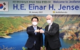 전남도정 영암군민신문647호2021. 01.29김영록 전남도지사는 1월 26일 아이너 옌센 주한 덴마크 대사와 면담을 갖고 전남 해상풍력 발전사업의 성공적인 추진을 위해 적극 협력키로 했다. 이날 전남도청에서 가진 면담은 지난해 2월에 이은 두 번째 만남으로, 해상풍력을 넘어 신재생에너지 산업 전반에 거쳐 발전방안에 대한 폭넓은 대화가 이어졌다. 이와 함께 김 지사는 지난해 1월 직접 방문해 시찰한 덴마크 해상풍력발전 산업 중심도시인 에스비에르시의 라스무센 시장과 우호교류를 다지기 위해 마련한 서한문을 전달해달라고 요청하기도 했다. 옌센 주한 덴마크대사는 "...