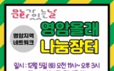 보류 영암군민신문639호2020. 12.04사회적협동조합 영암지역네트워크(이사장 박준재)는 오는 12월 5일 오전 11시부터 오후 3시까지 영암5일시장에서 두 번째 '영암올래 나눔장터'를 연다. 이번 '문화가 있는 날 영암올래 나눔장터'에서는 지역민들의 기증물품 경매, 가족 청소년 나눔장터, 기부물품 나눔장터, 플리마켓 등이 펼쳐질 예정이다. 영암지역네트워크는 올해 나눔장터는 '코로나19'로 지친 군민들이 서로를 위로하고 함께 힘이 되자는 취지로 영암 전통시장 부근에서 개최하고 무대공연과 행사규모를 축소해 연다고 ...