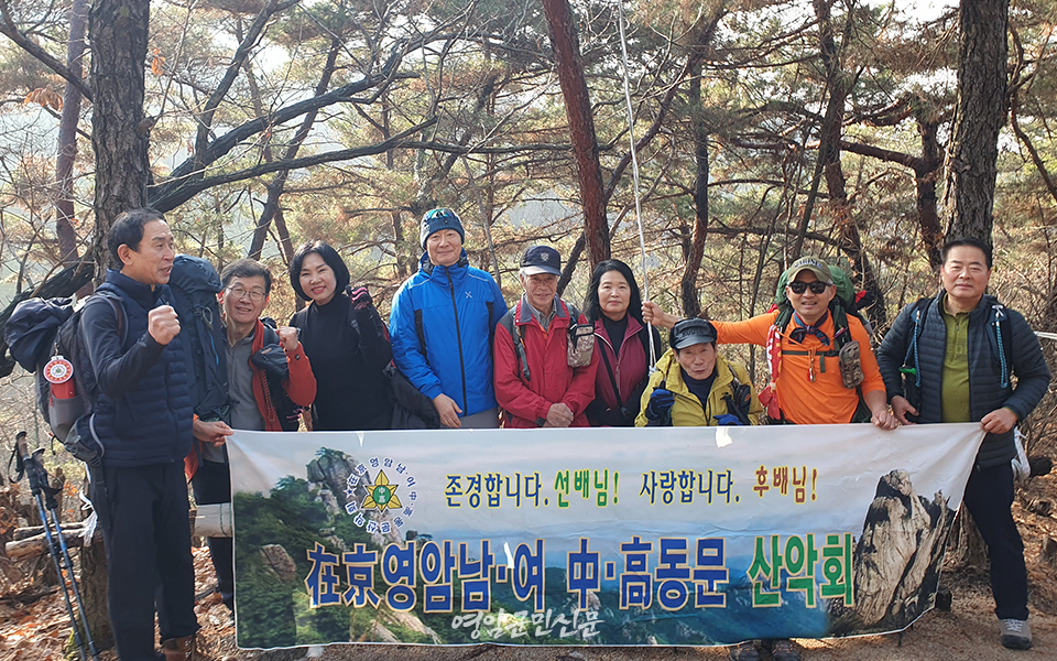 | 재경영암남녀중고동문회, 수락산서 종산 행사 연간 산행 10회 마무리 김대호 서울기자 yanews@hanmail.net |
