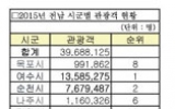 지역사회 이승범 기자2016. 11.18지난해 영암군을 방문한 관광객은 모두 94만8천924명으로 전남도내 22개 시·군 가운데 10위권에 머문 것으로 집계됐다.이 같은 관광객 수는 국립공원 월출산이 자리해있고, 인근에 각종 문화관광자원을 보유하고 있는 점을 감안하면 매우 초라한 성적표로, 보다 많은 관광객 유인을 위한 체계적인 대책 마련이 절실하다는 지적이 이어지고 있다.반면 같은 기간 전남을 방문한 관광객은 4천만명에 육박해 경기도에 이어 전국에서 두 번째로 관광객이 많이 찾은 지역으로 기록됐을 뿐만 아니라, 세월호 사고 이후 1년 만에 2위 자리를 ...