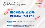 교육 영암군민신문2025. 06.12전라남도는 민주주의 회복과 발전을 위해 헌신한 도민을 예우하기 위한 민주화운동명예수당 신청·접수를 6월부터 본격 시작한다. 민주화운동명예수당을 통해 그동안 생계지원비 대상에 포함되지 못했던 민주화운동 관련자에게도 소득에 관계없이 매월 6만 원씩 지급해 보다 폭넓은 예우가 가능해졌다. 신청 대상은 신청일 기준 만 65세 이상으로 전남에 거주하는 민주화운동 관련자다. 생계지원비와 중복 지급은 불가하다. 전남 민주화운동 관련자는 총 433명이며, 이 중 65세 이상 민주화운동 관련자는 160여 명이다. 전남도는 신청을 독...