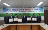 지역사회 영암군민신문2019. 04.05영암교육지원청(교육장 나임)은 지난 4월 4일 소회의실에서 (재)영암군장학회 장학증서 수여식을 가졌다.이날 장학증서 수여식에서는 2017년 영암 관내 고등학교 졸업생으로 대학에 입학한 대학생 6명에게 150만원씩 모두 900만원의 장학금이 장학증서와 함께 수여됐다. 아울러 후반기에는 관내 중학생 13명에 각 30만원씩, 고등학생 10명에게 각 50만원씩을 수여할 예정이다.(재)영암군장학회는 지난 1973년 1월 ㈜교보생명보험 설립자 신용호 회장이 장학기금으로 2억1천400만원을 출연해 그 발생이자로 운영을 시작했다. 지난 2009년...