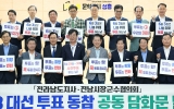 정치 이승범 기자2025. 05.29전라남도와 전남시장군수협의회는 27일 장흥군청에서 열린 민선8기 전남시장군수협의회 임시총회서 미래 발전과 도민 행복을 견인할 핵심과제가 새 정부에 반영되도록 노력할 것을 다짐하고, 도민 투표 참여를 호소했다. 임시총회는 김영록 전남도지사, 전남 22개 시군이 참석한 가운데 지난 4월 열린 대한민국 시장군수구청장협의회 건의문 기자회견 결과 공유, 투표 동참 공동담화문 발표 등이 진행됐다. 김영록 지사는 “지역경제와 민생경제가 그 어느때보다 어려운 상황에서 전남은 새정부 출범에 맞춰 미래 발전과 도민 행복을 견인하도록 22...