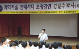 보류 변중섭 기자2010. 10.15영암영재교육원(교육장 김형)은 지난 8월 3일, 4일 양일간에 걸쳐 과학기술앰배서더 초청강연회를 영암초 백년관에서 개최했다.영암 초.중 영재학생 전원을 대상으로 한 이번 강연은 목포대 김일수 박사의 ‘로봇과 인간’, 순천대 김병일 박사의 ‘라면의 과학상식’이라는 주제로 평소 자주 접하는 것들을 과학적으로 재밌게 풀어주고 다양한 자료를 통해 살펴보며 함께 생각해보는 좋은 기회가 됐다.새로운 비전과 연구과제를 제시한 이번 강연회를 통해 학생들은 호기심을 일깨우고, 과학과 미래에 대한 꿈을 가지...