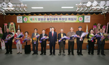 제9기 영암군 왕인대학 회장단 취임식이 4월10일 오전 군 종합사회복지관에서 김일태 군수와 세한대 평생교육원 정기영 원장, 최재갑 영암군노인회장 등과 왕인대학생 등 150여명이 참석한 가운데 열렸다.