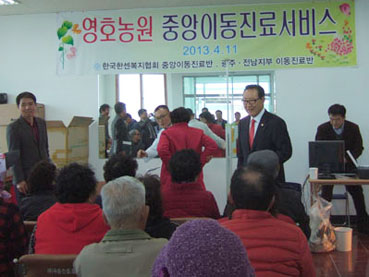 한센 이동진료는 군이 전문기관(한국한센복지협회)에 위탁 실시하는 사업으로, 한국한센복지협회 김종필 원장과 광주지부 의료진 등 전문가들이 함께 참여해 ▲대장암 등 6종 암에 대한 혈액검사, ▲통증치료기를 이용한 통증완화치료, ▲장애 예방을 위한 교정용 구두보급, ▲재활을 위한 보장구 제작 보급 등의 사업을 수행한다.