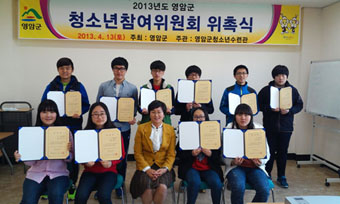 군은 공개 모집을 통해 선발된 영암 관내 고등학생 11명을 제3기 청소년참여위원으로 위촉했다. 위원회를 이끌어 갈 위원단은 김정준 위원장(영암고 3학년), 박선영 부위원장(영암여고 2학년), 김하영 서기(영암여고 2학년) 등을 중심으로 8명의 위원들이 향후 임기 1년 동안 영암군 청소년정책에 대한 건의 및 청소년 권익증진을 위한 중요한 역할을 하게 된다.