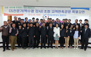 박수경 CS전문강사는 고객만족 경영을 위해 농업인 고객에게 진정한 마음으로 대해 줄 것을 강조했다. 특히 조직 내에서 직원 상호간의 신뢰와 소통이 원활할 때 외부 고객에게도 욕구와 기대에 부응하는 최상의 서비스가 이행될 수 있다고 강조했다.